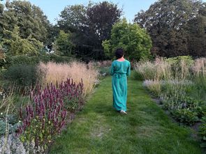 Met siergrassen, vaste planten en brede graspaden is het een tuin geworden die het hele jaar structuur en sfeer biedt. In augustus is de tuin op haar mooist, met rijke bloei en zachte beweging in de wind.