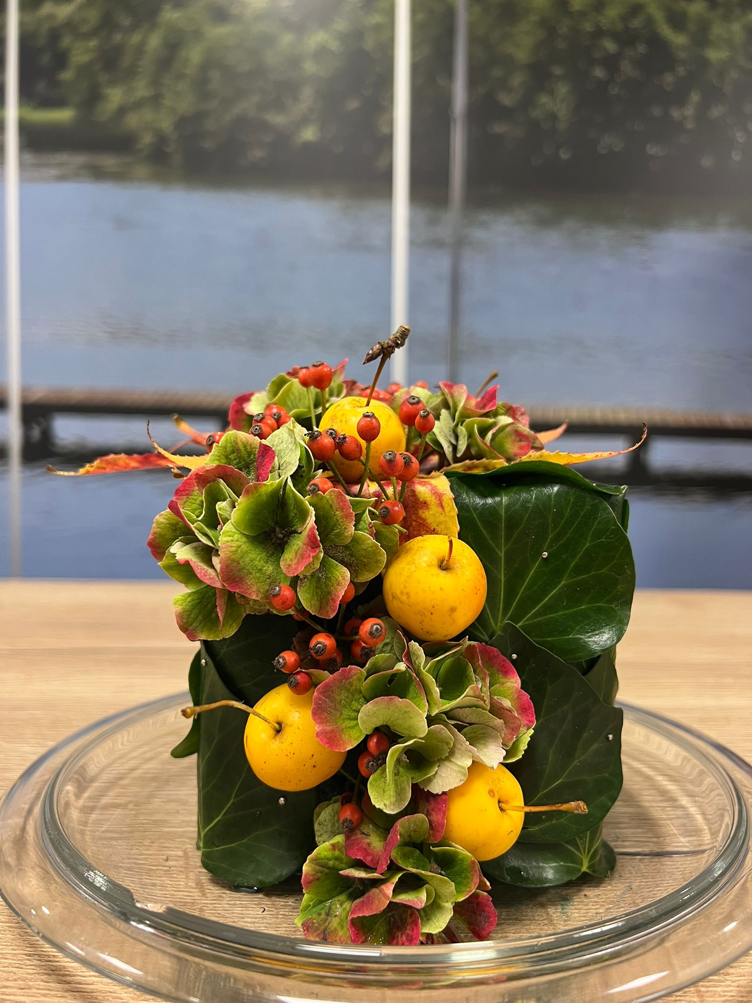 Demonstratie Kerstarrangementen schikken door Ruud van Schie
