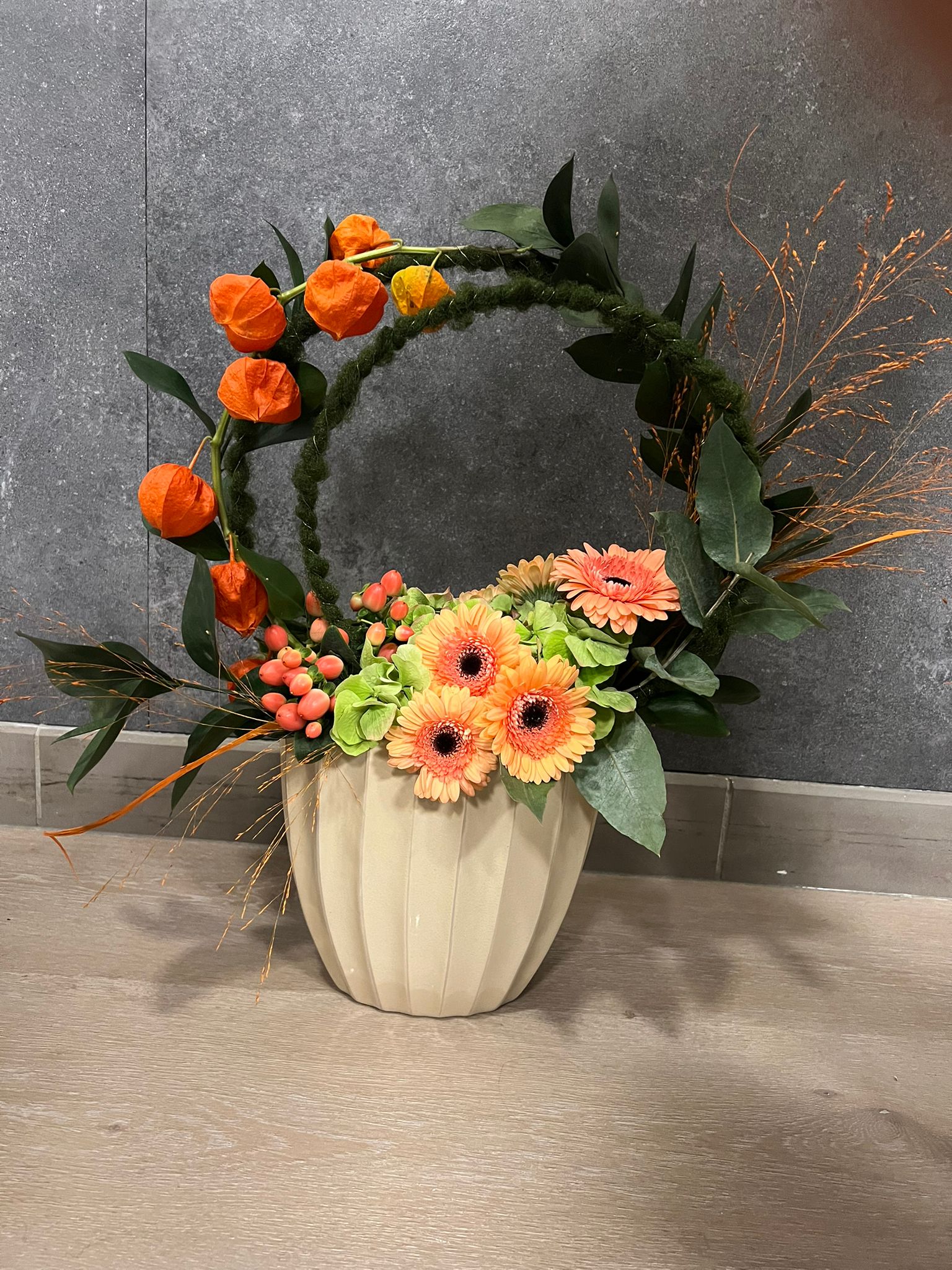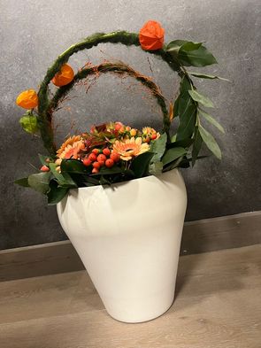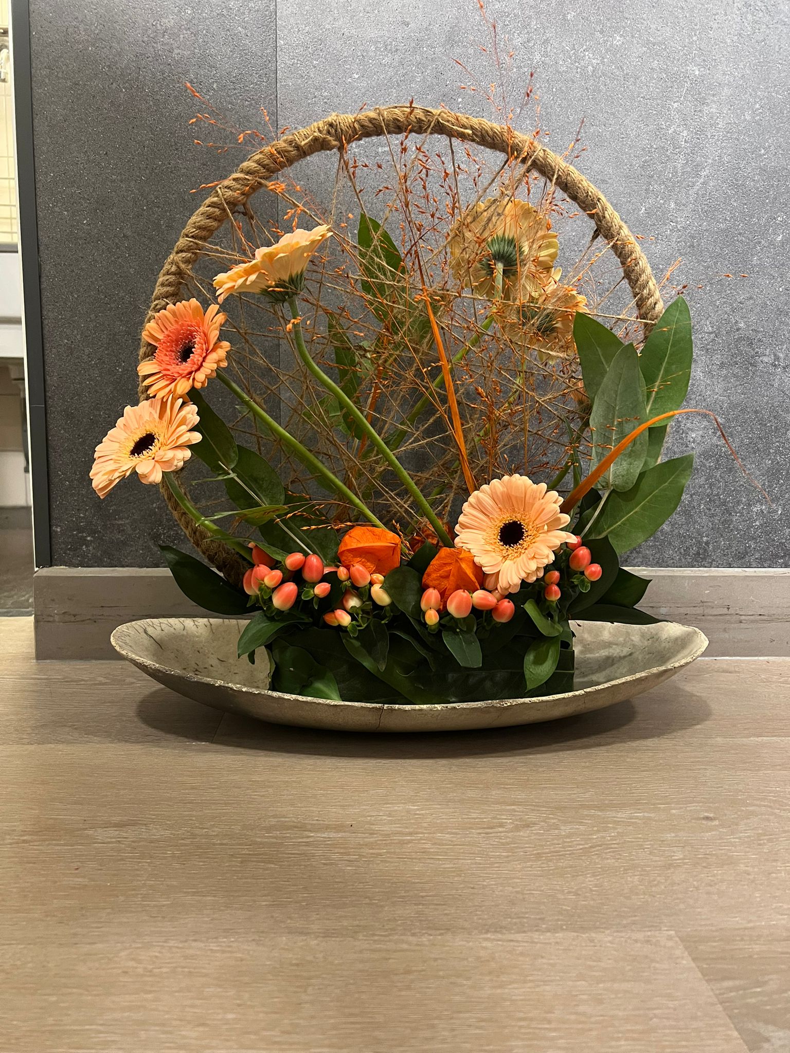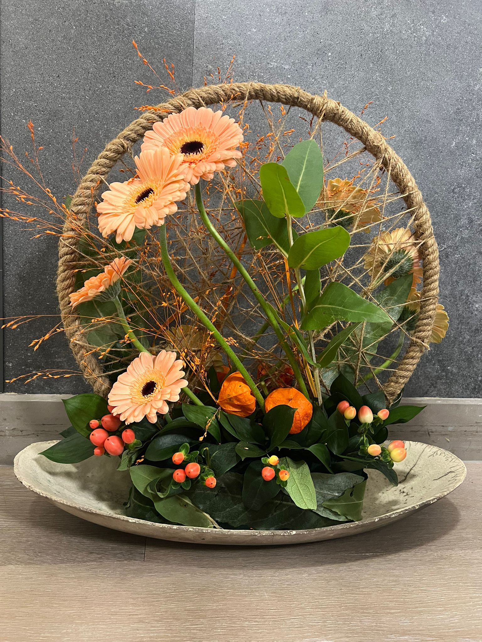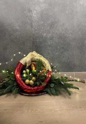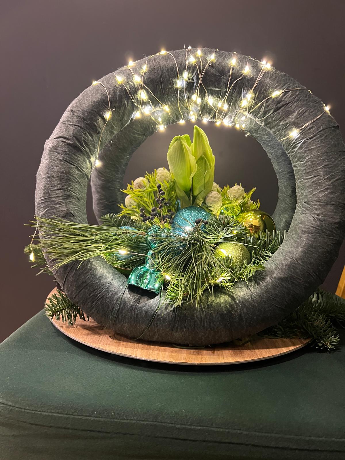 Demonstratie Kerstarrangementen schikken door Ruud van Schie